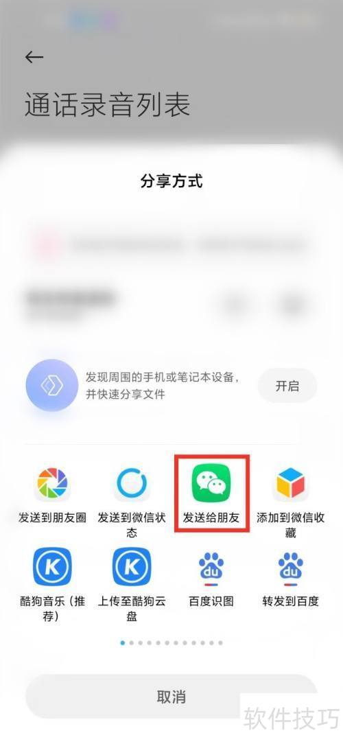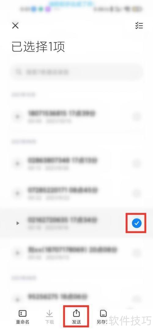 18、 长按选择需要导出的通话录音,随后点击底部发送选项。