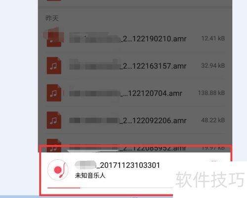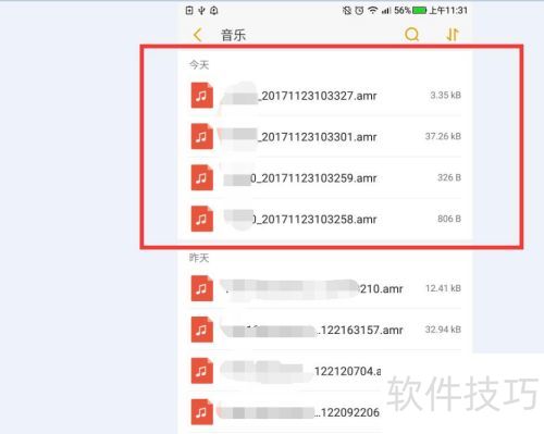 2、 音乐列表默认按时间顺序排列手机音频,其中也包括我们的录音片段。