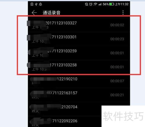 5、 通话录音中,能够看到按时间顺序排列的录音列表。