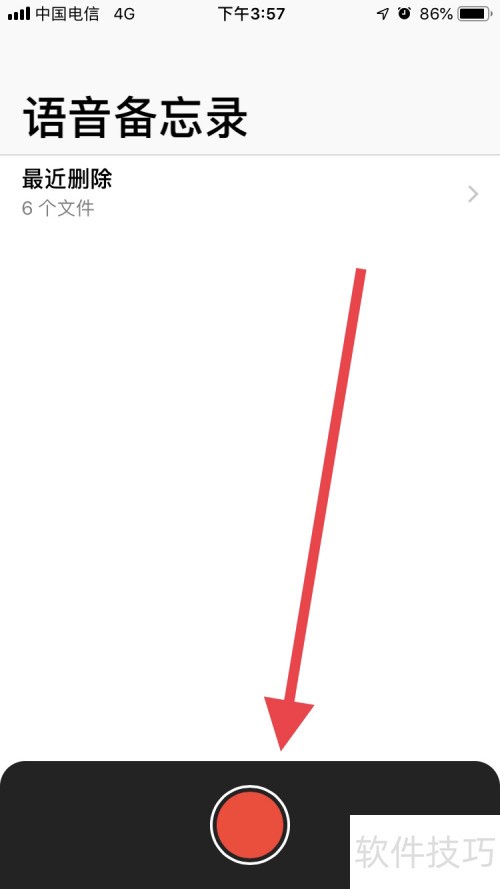 8、 打开语音备忘录,点击下方红心图标开始录音。