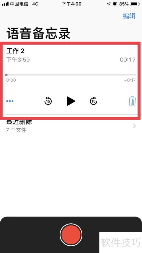 11、 电话结束后,返回语音备忘录,再次点击红心图标停止录音。