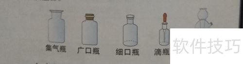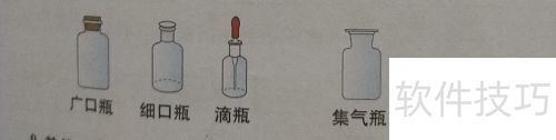 8、 盛放物质的仪器包括:试剂瓶(广口、细口、滴瓶)以及集气瓶。