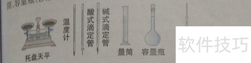 5、 计量仪器包括:托盘天平、温度计、酸碱式滴定管、量筒、容量瓶和移液管。