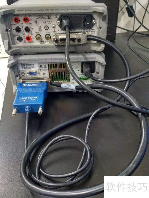2、 把USB-GPIB一端连接到任意一台安捷伦仪器的GPIB接口,再将两台仪器的GPIB接口级联起来。