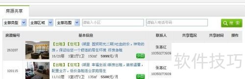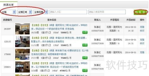 2、 在上方输入框内输入目标房源类型等内容,点击搜索按钮即可获取相应房源信息,帮助经纪人减少在大量数据中查找的麻烦。所示。