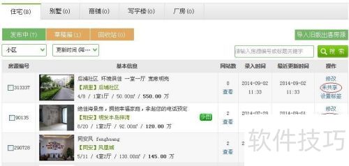 8、 若要共享房源,点击出售管理/出租管理。在房源列表里,已共享的房源无法再次共享,仅可修改;未共享的房源可点击进行共享设置。操作所示。
