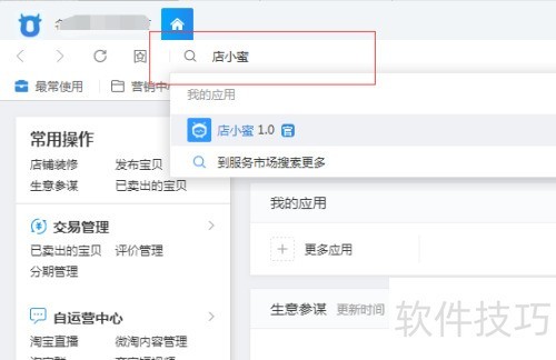 1、 首次使用店小蜜的用户,需在千牛搜索框里查找店小蜜,具体位置见下图红框标注。