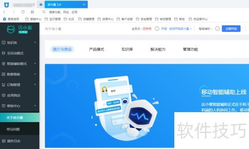 4、 进入适合自己版本的页面,来到店小蜜后台配置界面。开启或关闭店小蜜的按钮位于红框右侧。开启前,用户需先配置知识库,完成知识库设置才能使用。