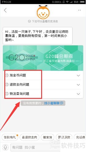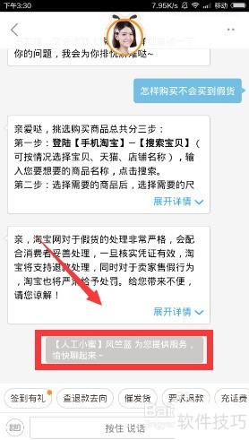 6、 在页面,若觉得机器人回答不够详细,可将小蜜切换为人工服务。相比机器人,人工解答或许更清晰,有助于快速解决你的问题。