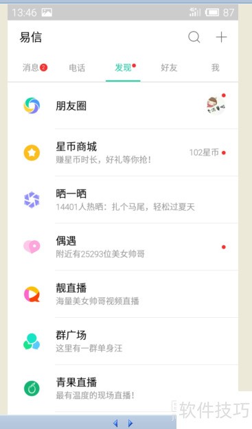 6、 此外,发现界面包含晒一晒问一问偶遇等功能,趣味十足。