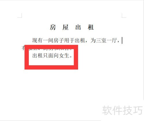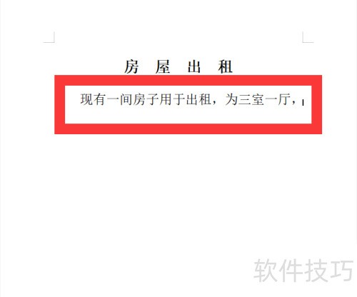 9、 在卡纸第一行写明房屋出租标题。