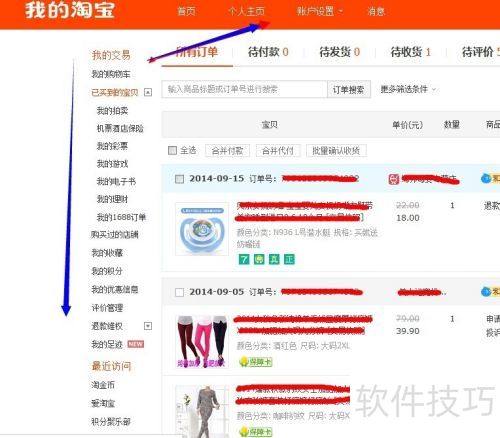11、 进入后,可在我淘宝--已买到的宝贝中查看个人账户及积分、优惠信息等可操作的小类目。