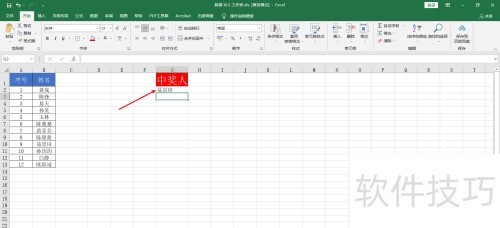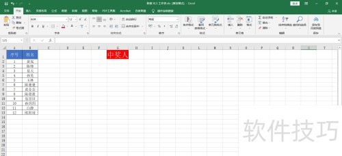 1、 在电脑上新建Excel表格,输入抽奖人员名单。
