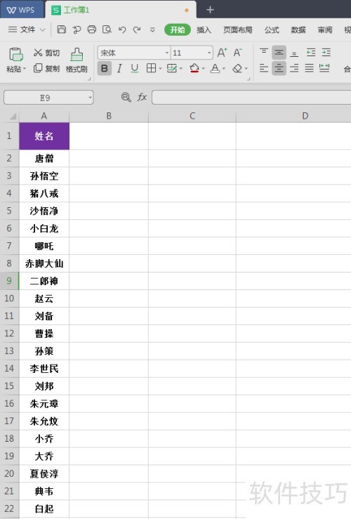 4、 然后按下键盘上的Ctrl+Shift+↓快捷键,快速选中所有名字,所示。