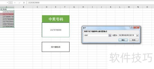 16、 将中奖区域的单元格设为浅红色,确认即可。