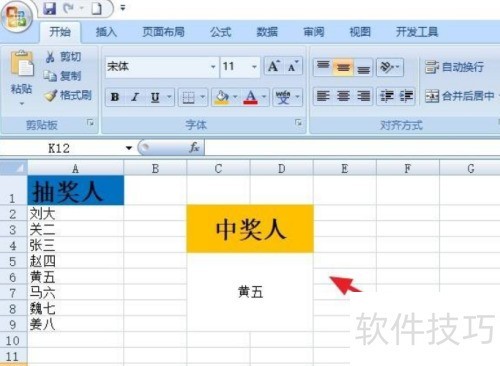 6、 选定中奖者位置,设置填充颜色后确认。若有人中奖,名字将显示为设定的颜色。