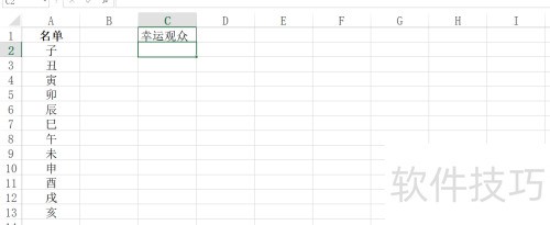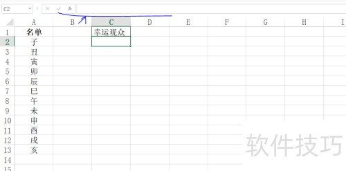 2、 选定C2单元格。