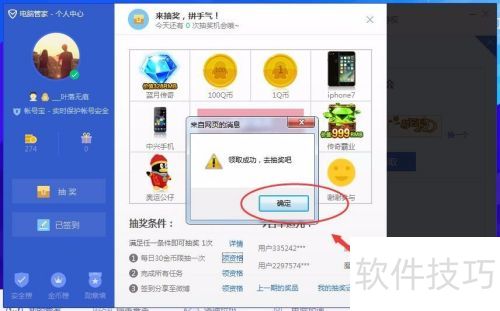 7、 抽奖资格领取成功,点击确定关闭提示框。