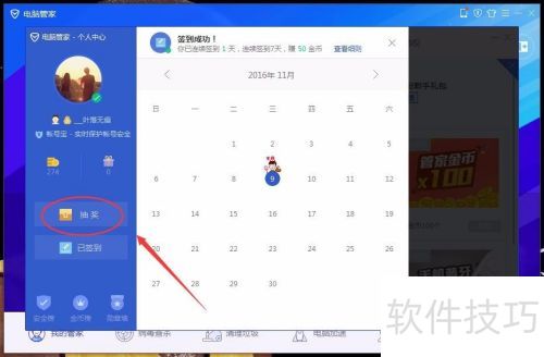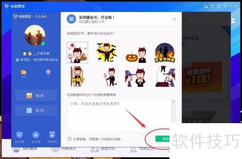 3、 在新弹出的窗口中点击签到按钮,先完成签到以获取金币。
