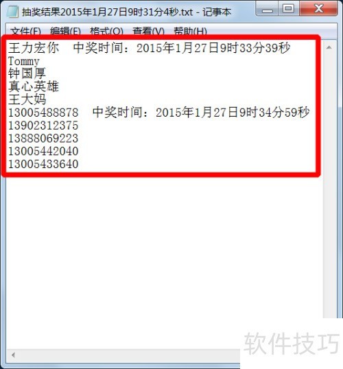12、 软件推出后,会自动生成一个包含抽奖结果的txt文档。