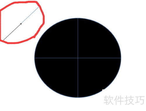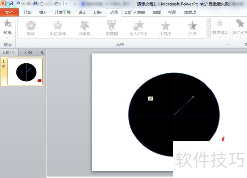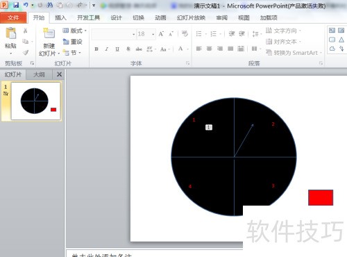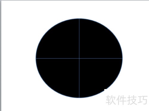 1、 新建PPT幻灯片,插入圆形并设背景为黑色,然后将圆四等分。