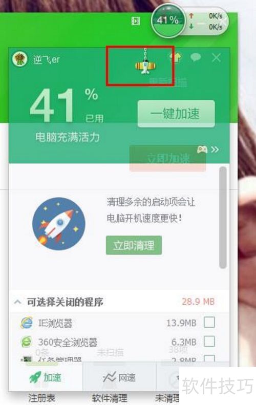 2、 安装360安全卫士后,加速球通常会默认开启,显示在桌面右下或右上角,直接点击即可使用。