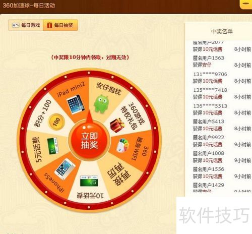 4、 接着便能开启360每日抽奖,点击下方立即抽奖按钮即可参与。