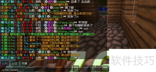 4、 第三步(二):输入/gifts random指令,随机选取服务器中的一名玩家,五秒后送出神秘礼物。