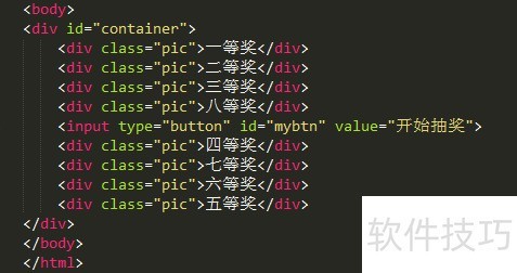 1、 先修改HTML中body部分的内容,为所有转盘区域的div元素添加相同的class类名。