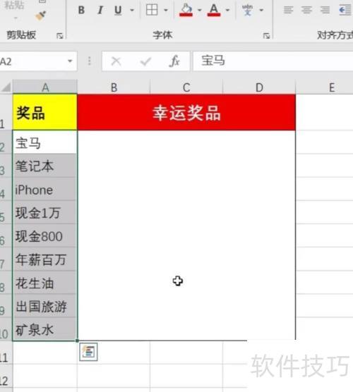 2、 打开Excel软件,进入后创建奖品表格,示例所示。