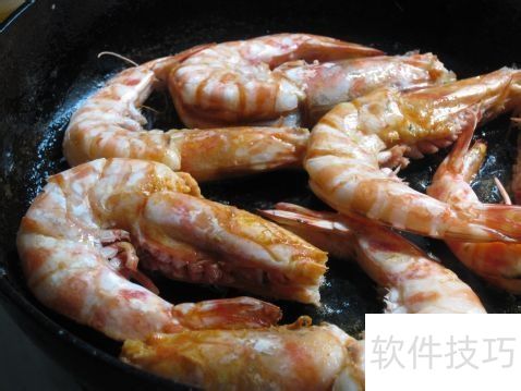 1、 剪掉大虾眼往前的虾枪、须和脚,剖开背部去沙线,洗净擦干。旺火加热锅,倒油烧热,放入大虾两面煎至发红,煸出虾黄与红汁即可。