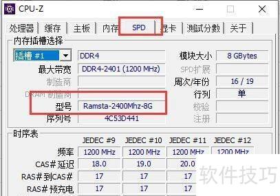 3、 第三步:随后,打开SPD选项,查看型号一栏即可找到内存的具体型号信息。