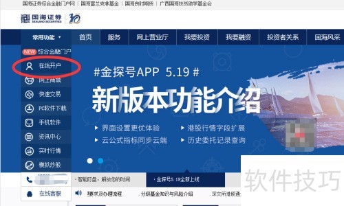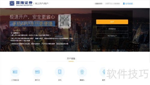 2、 登录后,选择在线开户,进入页面,点击开户按钮即可继续操作。