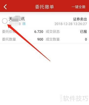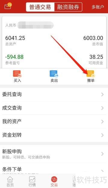 2、 在交易界面中,点击箭头指向的撤单按钮。