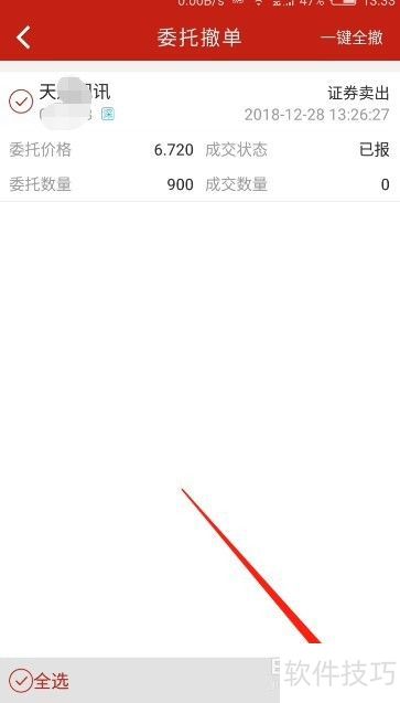 4、 勾选后,点击右下角箭头指向的撤单按钮。