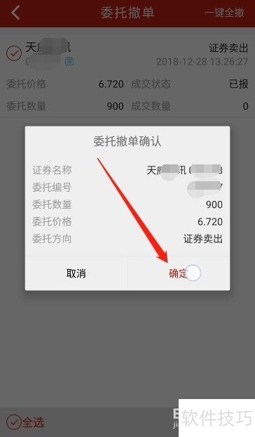 5、 ,随后会出现委托撤单确认框,点击确定。