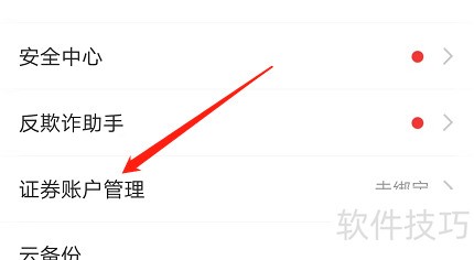4、 进入账号设置页面后,点击证券账户管理选项。