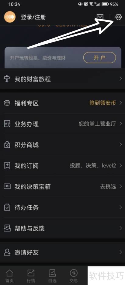 2、 打开APP,进入页面,点击右上角齿轮图标,根据箭头指示进入。