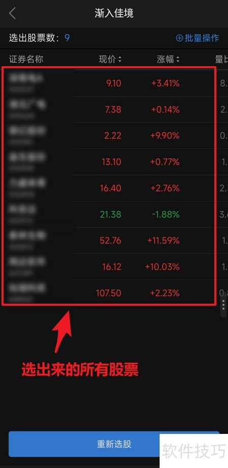 5、 稍等片刻,即可筛选出所有符合条件的股票。