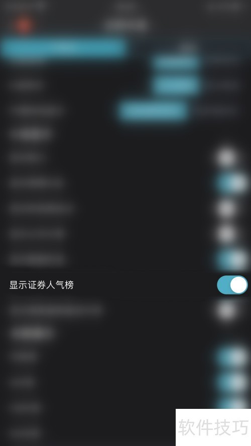 4、 分时K线设置中,点击显示证券人气榜后的圆点图标。