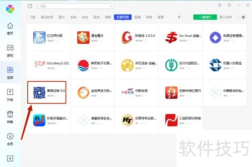 3、 在股票网银软件库中找到国海证券9.0,左键点击后一键安...