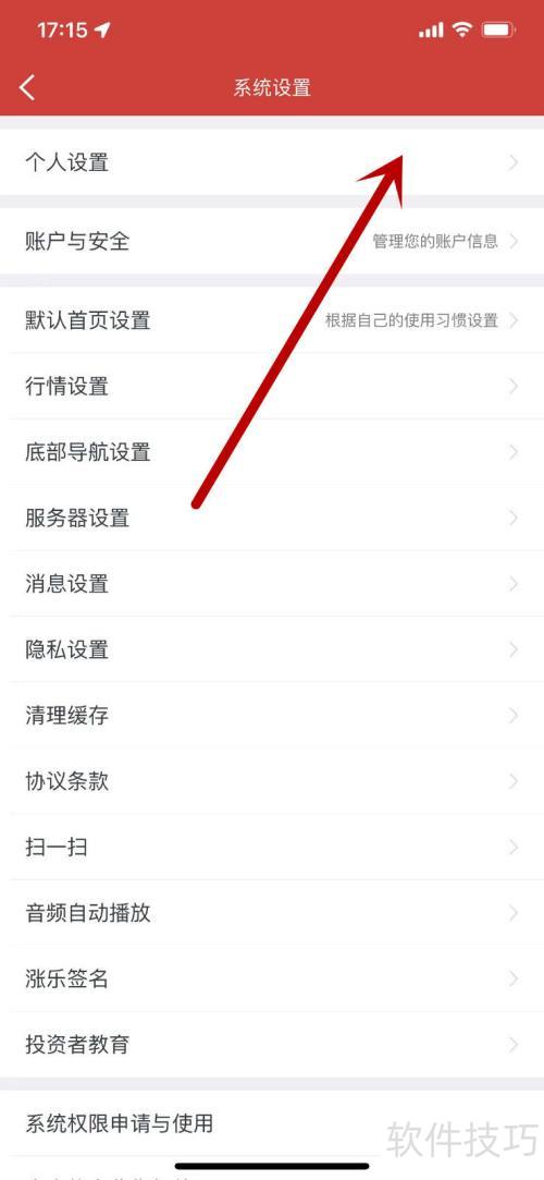 1、 打开财富涨乐通APP,进入账户页面,点击左上角展开个人中心,选择系统设置选项。