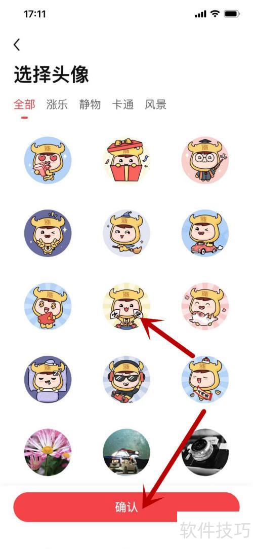 4、 进入头像选择页,挑选卡通头像,点击下方确认按钮。