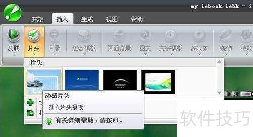 4、 封面封底图片替换后,编辑电子杂志片头动画。在插入菜单中点击片头,任选一个即可。
