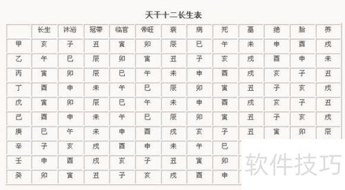7、 通过天干十二长生表查找戊在午月的强弱情况。查询后得知,戊在午月处于帝旺状态,显然较为旺盛。在该表中,冠带临官帝旺均属旺地,日干生于这些位置即为相对旺盛。死墓绝则为弱地,日干生于此类位置即为相对衰弱。