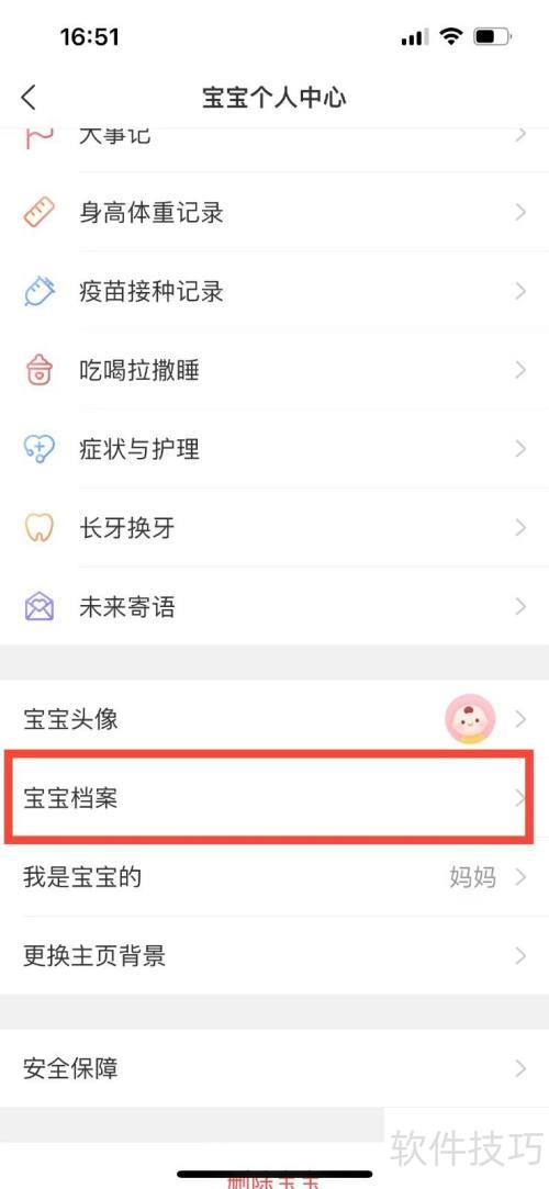 2、 进入宝宝个人中心,选择宝宝档案,即可查看详细信息。