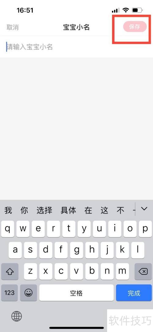 6、 输入小名后,点击右上角保存选项即可完成操作。