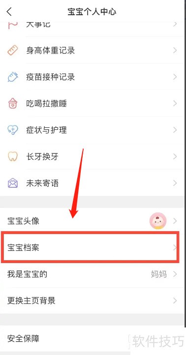 1、 首先,打开APP,进入宝宝个人中心,选择选项。