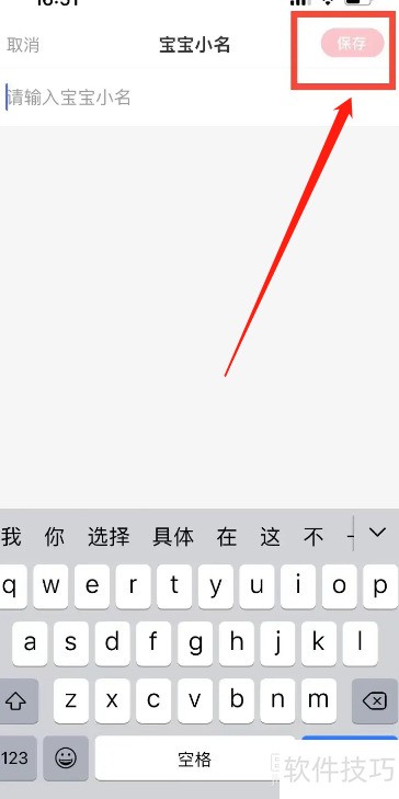 3、 输入小名并点击右上角的保存按钮完成操作。