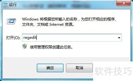 2、 打开运行对话框,输入注册表编辑命令REGEDIT,点击确定,即可进入注册表操作界面。